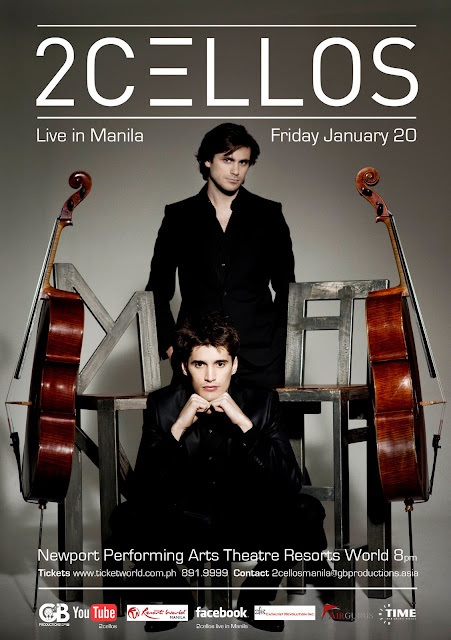 2CELLOS are Luka Sulic and Stjepan Hauser. Both are set to perform and share for the first time to the Filipinos their pop/rock/classical renditions of music industry's greats on January 20, 2012 at Newport Performing Arts Theater, Resorts World Manila, Philippines.